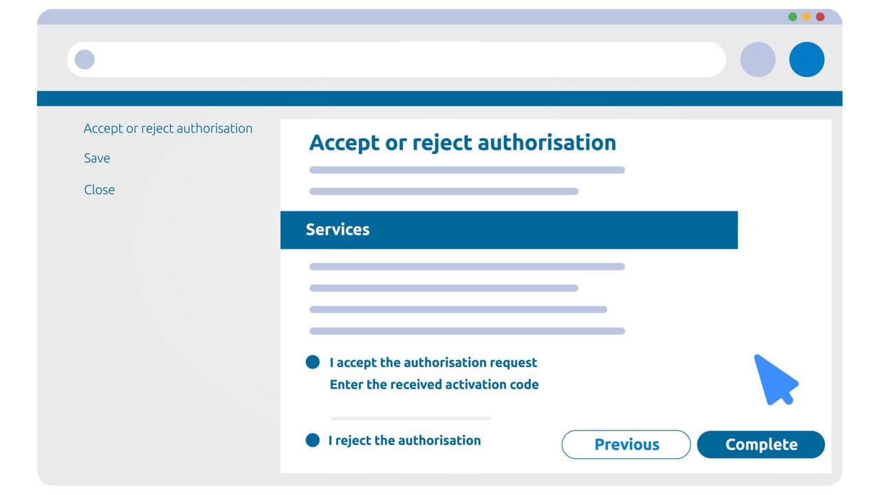 You authorise a person for one specific service. So the authorised person only has access to the data for which you have given them permission. You can authorise not more than one person or company per service. An authorisation is granted for an indefinite period of time but you can change or revoke it at all times. This way you maintain control of your account.